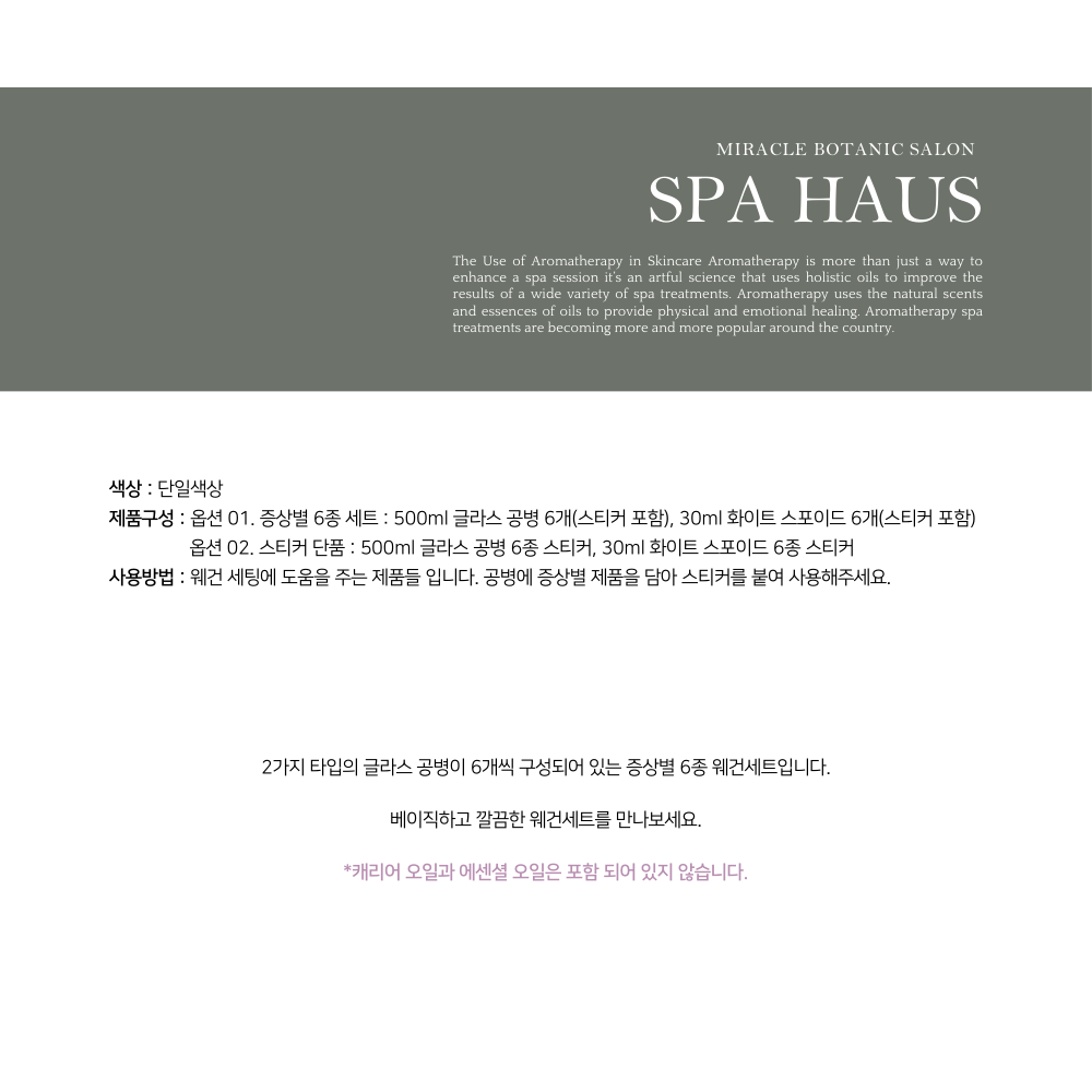 옵션 1. 증상별 6종세트 : 500ml 병 6개(스티커포함) + 30ml 화이트 스포이드 6개(스티커포함)